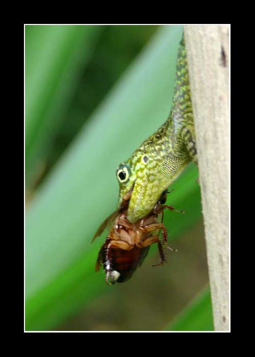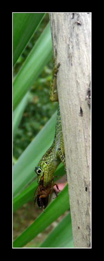 Ce lundi, voici un anoli gourmand qui vient d’attraper un gros ravet bien gras et bien juteux en guise de déjeuner.